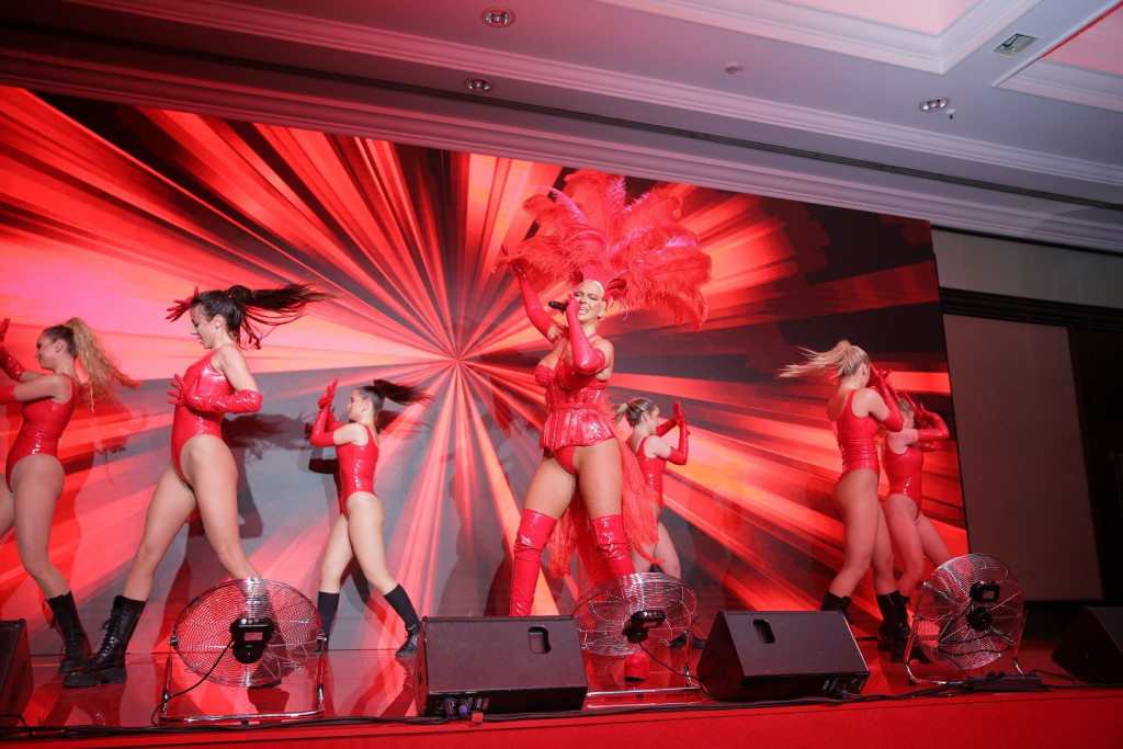 Oko 500 zvanica na jedinstvenom gala događaju oduševljeno je pratilo jednoipočasovni šou koji je priredila JK na bini, u pratnji plesačica obučenih u nesvakidašnje kostime. Perje, kristali, visoke štikle, prskalice u publici, bili su deo dekora koji je učinio njen nastup jednim od najzapaženijih ove godine.