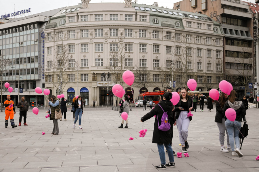 Svi slučajni prolaznici mogli su da ponesu balon i make up poklon uz tekstualnu poruku podrške.