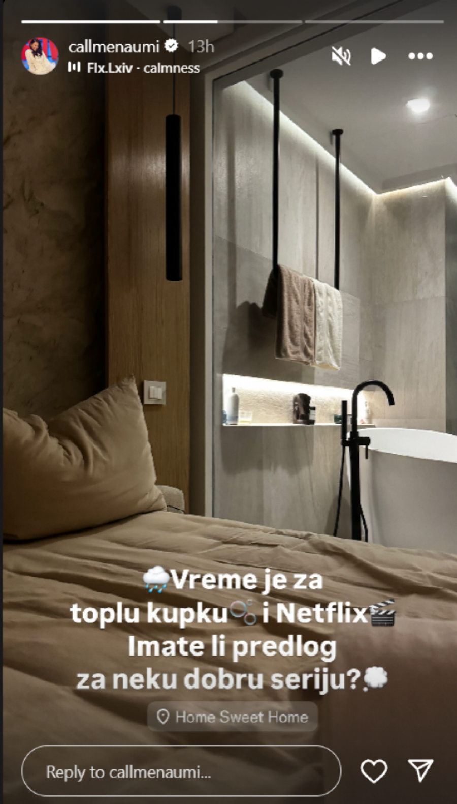 Nećemo vas dugo držati u neizvesnosti. Voditeljka je podelila fotografiju na Instagramu iz bračnog kreveta a pogled se ne pruža na ceo Beograd, već na kupatilo od mermera.