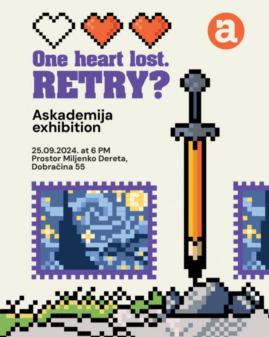 Sigurno vam se desilo da igrajući video-igricu izgubite jedan „život” i da imate mogućnost da ga vratite. A da li je vraćanje izgubljenog života moguće u realnosti? Na to pitanje odgovara izložba "One heart lost. Retry?" koja povezuje umetnike sa ruskog govornog područja, a koja će biti otvorena 25. septembra u 18 h, u prostoru „Miljenko Dereta”.