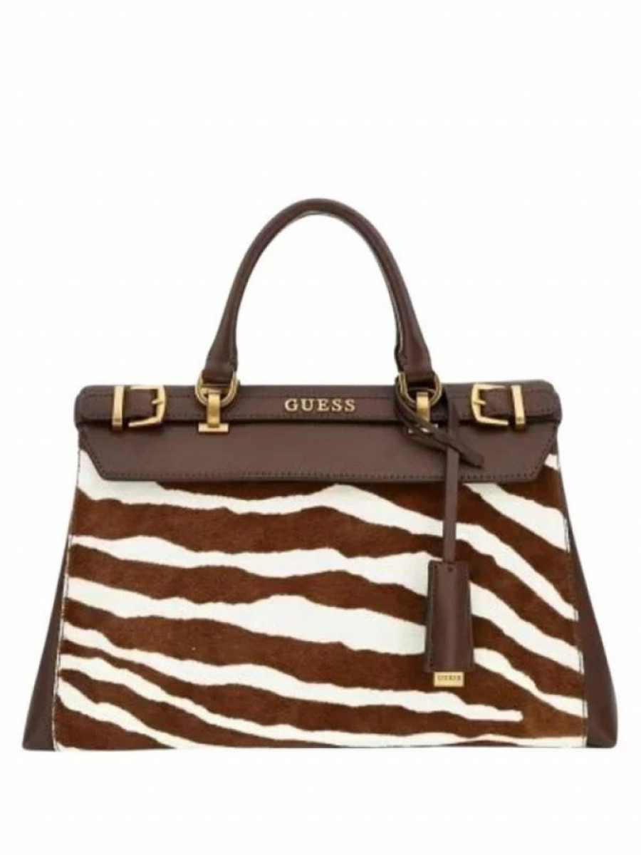 Animal print već dugo je prisutan u svetu modnih trendova, a ove godine fokus je stavljen na zebra print baš kakav je na Iseline torbi brenda GUESS