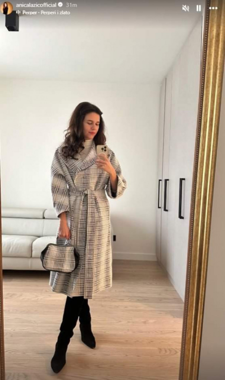 Na slici koju je podelila na društvenoj mreži Instagram vidi se bela kožna garnitura i garderober od poda do plafona.