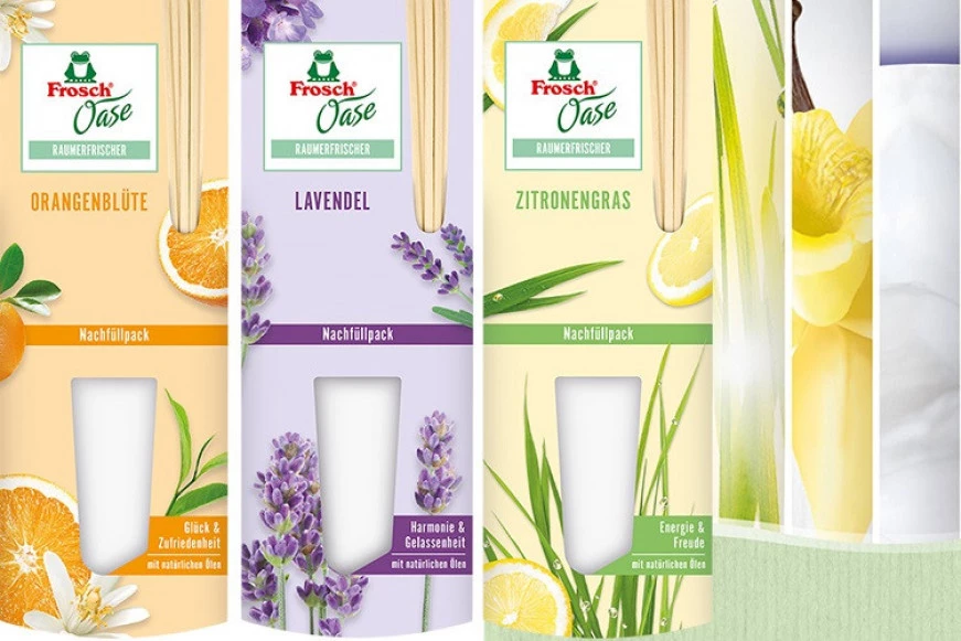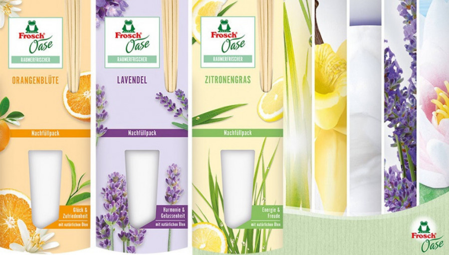 Osveživači prostorije Frosch Oase sa mirison lavande, pomorandže i limuna, zasnovani su na znanju i osiguravaju osećaj lakoće, dobrog raspoloženja u vašem domu.