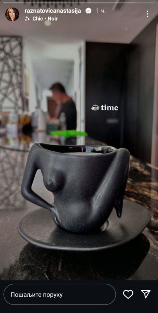 Naime, supruga fudbalera Nemanje Gudelja podelila je fotografiju na kojoj dominira elegantna, crna šoljica za kafu iz kolekcije Anisse Kermiche, dizajnerke poznate po svom inovativnom spoju umetnosti i funkcionalnosti.