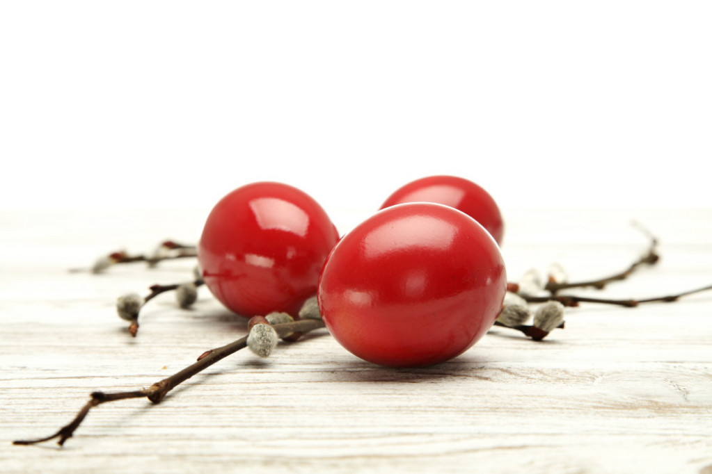 Jaja se po tradiciji farbaju na Veliki petak, u spomen na događaj kada je sveta Marija Magdalena Mironosica putovala u Rim da propoveda Jevanđelje i tom prilikom posetila cara Tiberija.