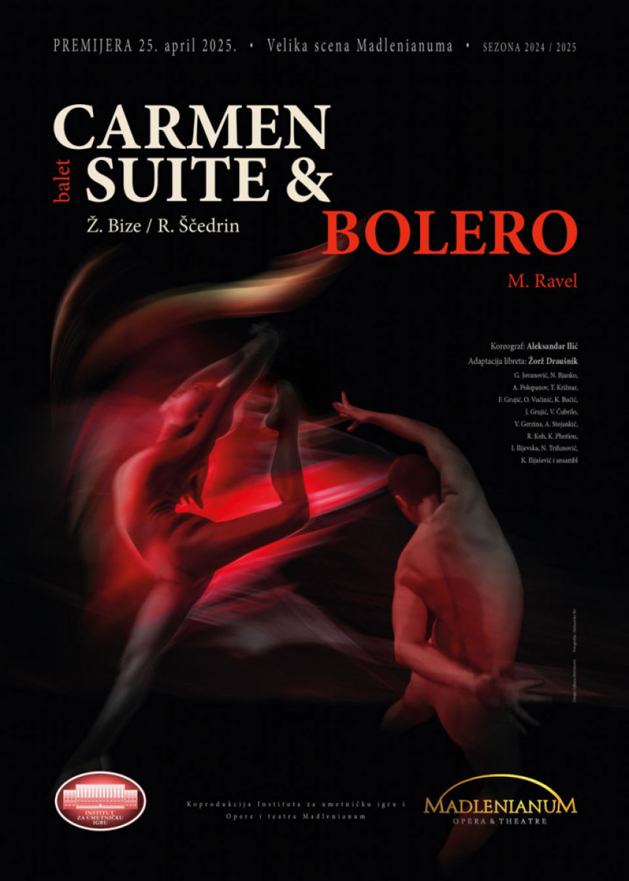 U režiji i koreografiji Aleksandra Ilića, biće izvedena savremena interpretacija dva muzička remek-dela – „Carmen Suite“ Žorža Bizea (u obradi Rodiona Ščedrina) i „Bolero“ Morisa Ravela.