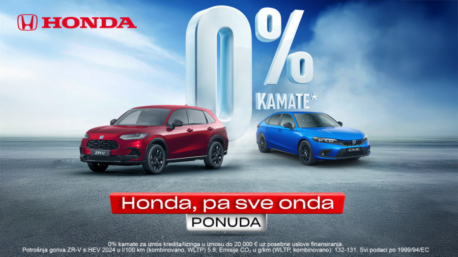 U ovom trenutku, u okviru aktuelne akcije „Honda, pa sve onda“, modeli ZR-V i Civic dolaze uz posebne pogodnosti, uključujući 0% kamate za iznose do 20.000 evra. ZR-V je moderan SUV za porodicu i gradsku dinamiku, a Civic je klasik za one koji vole preciznost, komfor i stil.