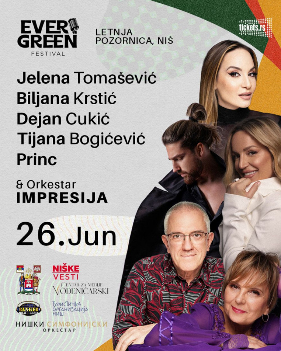 26. jun – Jelena Tomašević, Tijana Bogićević, Bilja Krstić, Dejan Cukić i Princ u pratnji orkestra „Impresija”