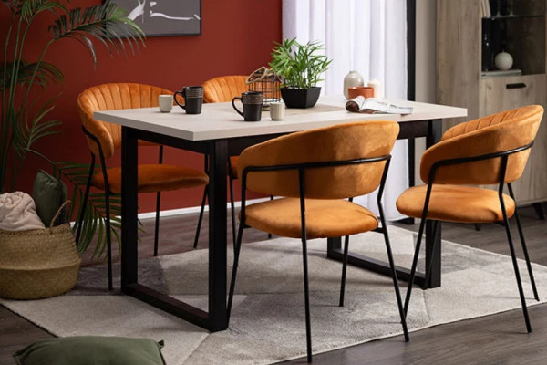 Za sve ljubitelje minimalističkog stila, idealan trpezarijski sto jeste trpezarijski sto IKON. Njegova konstrukcija od metala u crnoj boji, kao i ploča u dekoru kašmira, pružaju sofisticiran izgled celom ambijentu, dok istovremeno, ova kombinacija materijala, boja i geometrijska pravilnost ispunjavaju zahteve svih ljubitelja industrijskog i skandinavskog stila. Kako biste u potpunosti uživali u pauzi za kafu ili omiljeni topli napitak, šolje iz Forma Ideale asortimana će vam u tome pomoći. Dekoracija koja će ispuniti, ali i obogatiti ambijent, jeste veštačko cveće u crnoj saksiji.