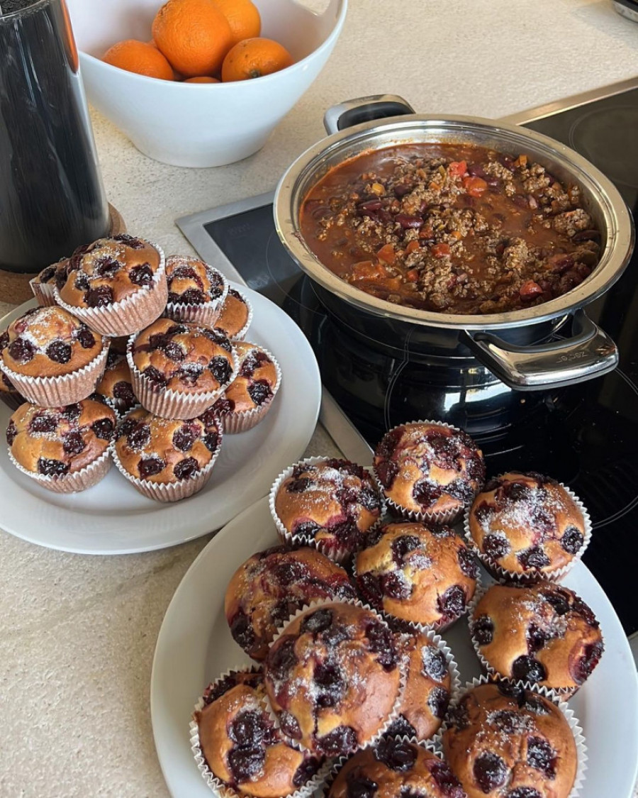 „Osećam se nedefinisano danas, pa kuvam celo pre podne. Ne znam zašto sam mislila da će mi to popraviti raspoloženje jer ne volim da kuvam. Klinci će biti srećni, pa zato”, poručila je u jednoj objavi iz moderno opremljene kuhinje.