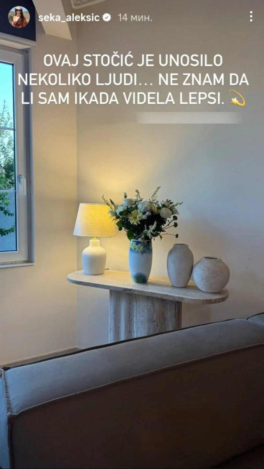 – Ovaj stočić je unosilo nekoliko ljudi. Ne znam da li sam ikada videla lepši – napisala je Seka uz fotografiju sa Instagrama.