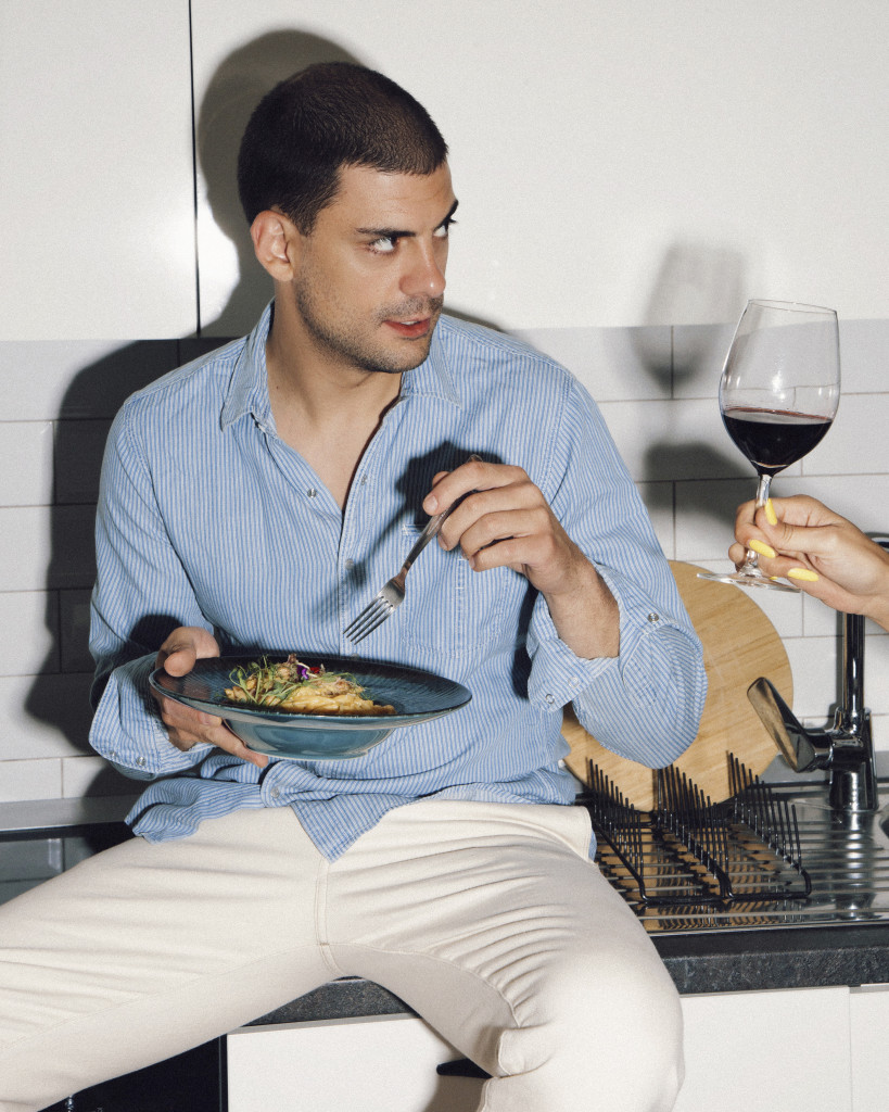 Kada je o enterijeru reč, Milan je ili fan minimalizma ili svoj životni prostor još nije u potpunosti opremio. U prvom planu vidimo kauč, a sivoj garnituri pripada i stočić, koji je u trenutku slikanja bio „ukrašen“ šoljicom kafe. Dalje u uglu je veći sto, trpezarijski. Mesto je tiho i izolovano, idealno za zaljubljeni mladi par. Možda nam Milan uskoro otkrije još neki detalj iz njegovog potkrovlja...