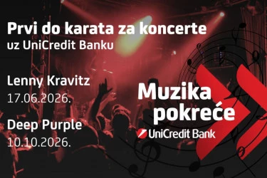 UniCredit Banka, u saradnji sa eFinity vodećom online platformom za kupovinu ulaznica, vam daje priliku da prvi obezbedite svoje mesto na predstojećim koncertima u organizaciji Skymusic-a: Lenny-ja Kravitz-a koji se održava 17. juna 2026, na Ušću, kao i legendarne grupe Deep Purple, 10. oktobra 2026, u Beogradskoj Areni.