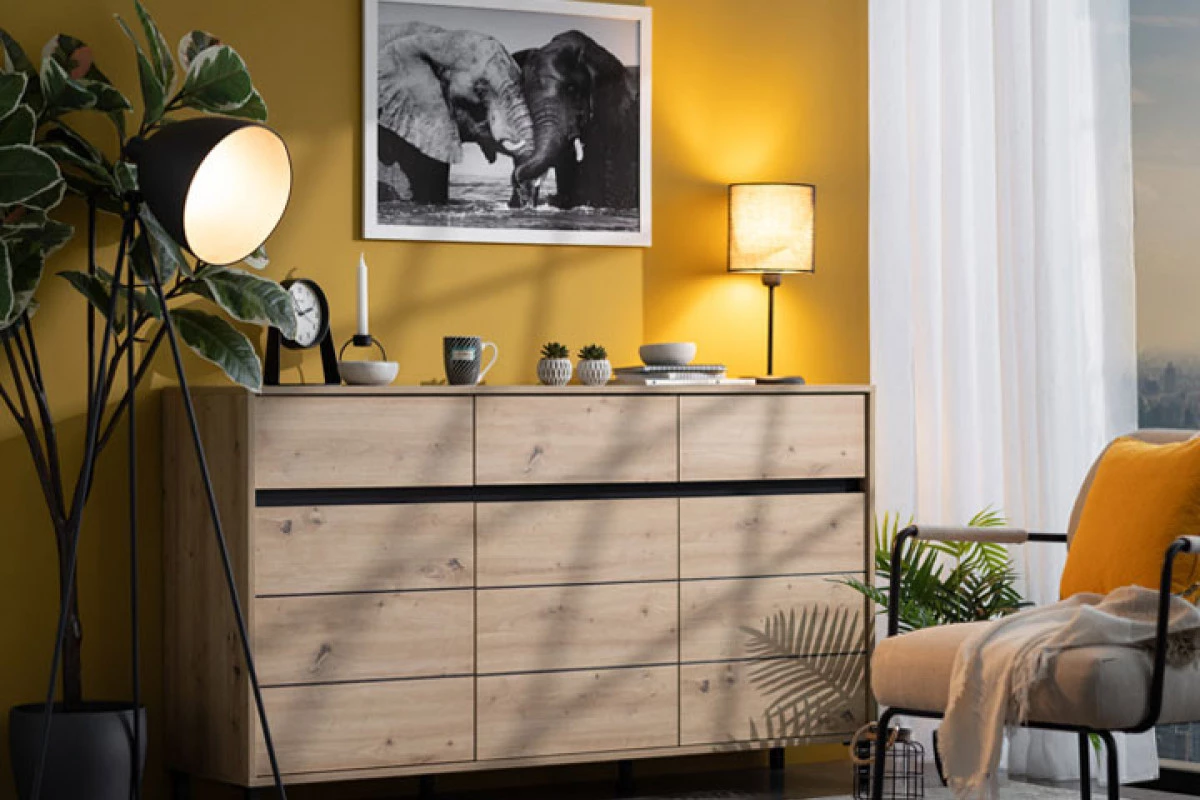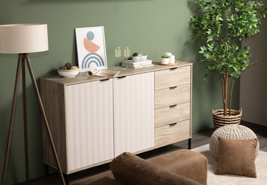 Kao dekoraciju na gornju površinu komode možete postaviti veštačko cveće u saksiji, iznad komode uramljenu sliku, a ukoliko je komoda blizu prozora, u ambijent se sjajno uklapa i zavesa MOLY.
