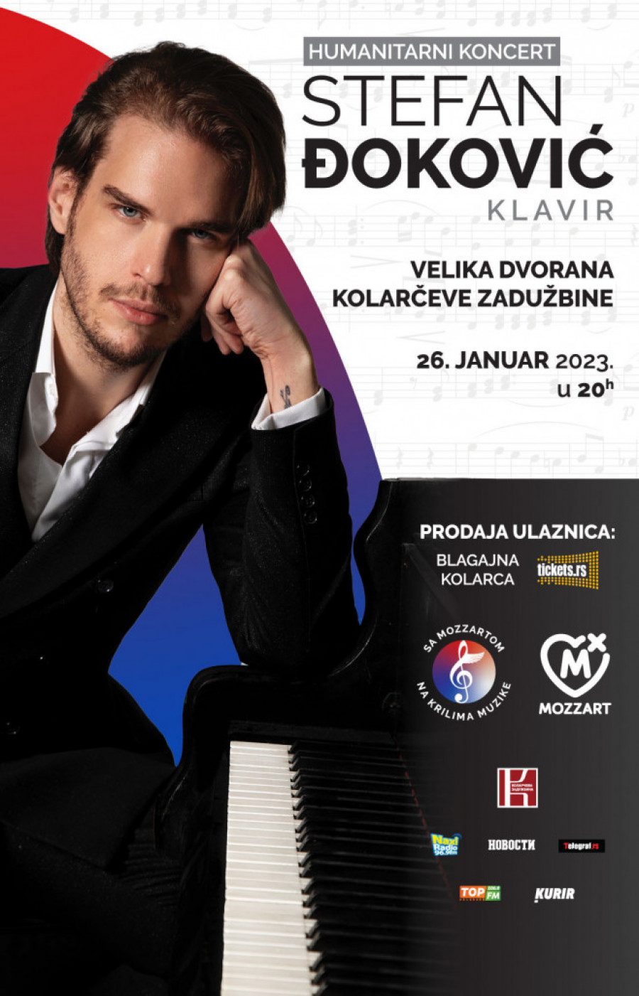 Magični let na krilima muzike počinje 26. januara na Kolarcu. Pozivamo vas da se sa Stefanom Đokovićem vinete visoko, do najkvalitetnije klasične muzike. Karte za ovaj koncert mogu se kupiti na blagajni Kolarca ili onlajn na sajtu Tickets.rs. Datumi održavanja ostalih koncerata iz serije „Sa Mozzartom na krilima muzike“ biće blagovremeno objavljeni.