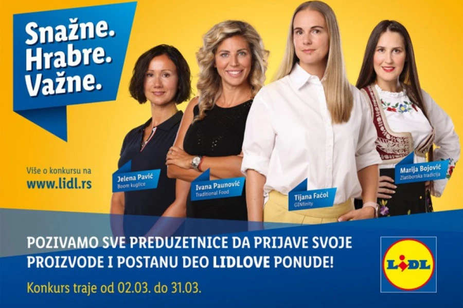 „Nakon uspešno sprovedene kampanje „Snažne. Hrabre. Važne.“ u prethodnoj godini tokom koje smo podržali i promovisali 26 preduzetnica i kratkotrajno ulistali 32 proizvoda, odlučili smo da i ovogodišnji Dan žena posvetimo damama i da se borimo za njihovu jednakost u poslovnom svetu. Obnovićemo saradnju sa pojedinim učesnicama prošlogodišnjeg konkursa, ali i dati šansu novim preduzetnicama da budu deo ovog projekta“, rekla je ispred kompanije Lidl Srbija Milica Stevanović, CSR menadžer u sektoru Nabavka.