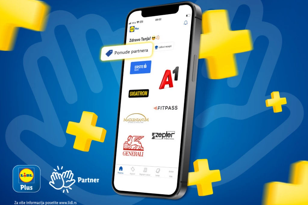 Lidl Plus program lojalnosti širi svoju ponudu, pa će njegovi korisnici, osim kupona za Lidl, dobijati specijalno kreirane kupone za povoljniju kupovinu i kod Lidl Plus partnera. Prvi dodatni Lidl Plus popusti na kupovinu i usluge dostupni su već sada kod kompanija: Erste Bank, Gigatron, A1 Srbija, Generali osiguranje Srbija, Fitpass, Zepter International i Opera i teatar Madlenianum, a Lidl najavljuje da će se ovaj spisak povećavati.