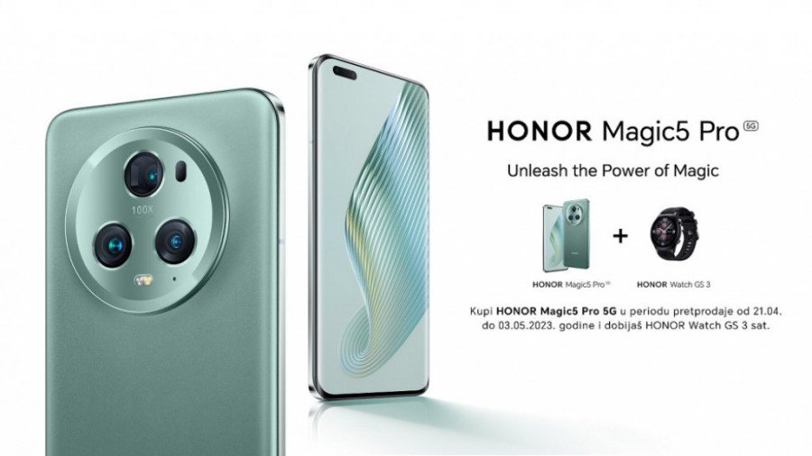 Globalni tehnološki brend HONOR predstavio je na tržištu Srbije dugoočekivani flegšip HONOR Magic5 Pro, čija je premijera bila na ovogodišnjem MWC sajmu. Novi model iz Magic serije, HONOR Magic5 Pro, predstavlja pravu revoluciju performansi i vrhunsko korisničko iskustvo, donoseći inovacije u sferama dizajna, ekrana i kamere. Dizajniran za one sa avanturističkim duhom, HONOR Magic5 Pro je dostupan u dve zadivljujuće boje - Black i Meadow Green, inspirisanim čudima prirode.