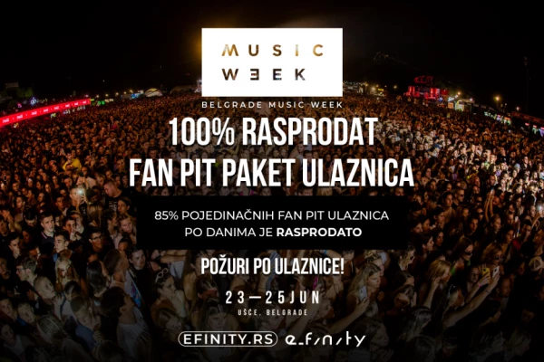 Više od 85 odsto pojedinačnih FAN PIT ulaznica prodato je za predstojeći Belgrade Music Week, dok su paketi FAN PIT ulaznica, koji obuhvataju sva tri festivalska dana, u potpunosti rasprodati!