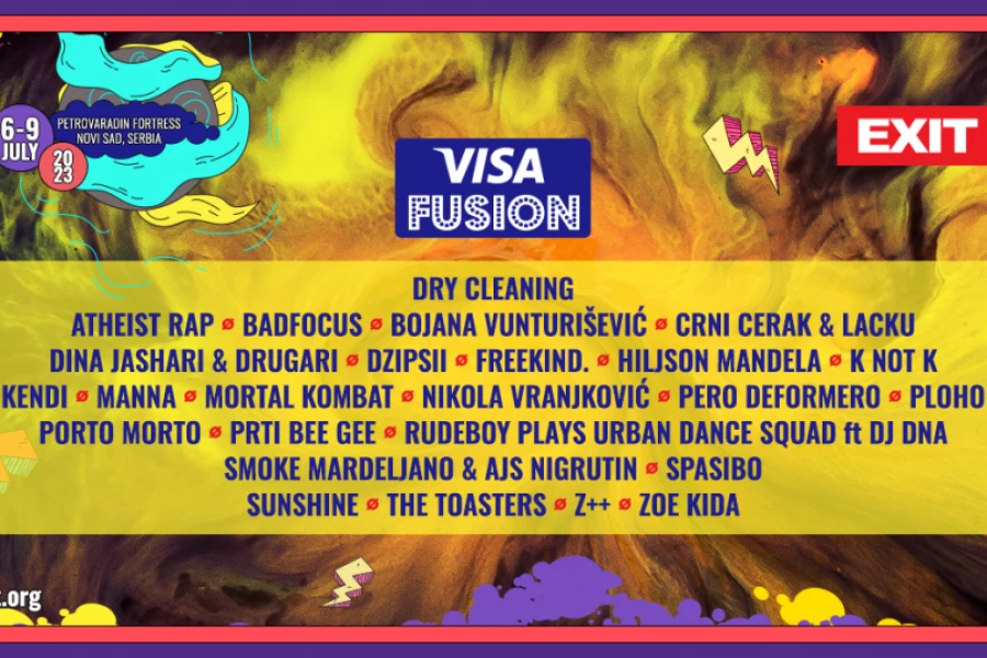 Exitova multižanrovska raskrsnica, koja na jednom mestu okuplja glasne gitare, rokere, trepere, DJ-eve i opasne MC-jeve – kultna Visa Fusion bina, upravo je dobila moćno pojačanje, koje od 6. do 9. jula na Petrovaradinskoj tvrđavi predvode britanska post punk senzacija Dry Cleaning, holandski Rudeboy i DJ DNA koji će izvoditi pesme kultnog Urban Dance Squada, vodeća domaća i regionalna imena među kojima su Nikola Vranjković, Bojana Vunturišević, zagrebački Porto Morto i domaćini, novosadski bendovi Atheist Rap i Pero Defformero. Sveže, nadolazeće snage predstavljaće miljenik domaće publike Dzipsii, slovenački Freekind, ruski Ploho i Spasibo, kao i finalisti ovogodišnjih HEMI muzičkih nagrada – rumunski sastav K not K, makedonska grupa Dina Jashari & Drugari, češki projekat Badfocus i estonska umetnica Manna.