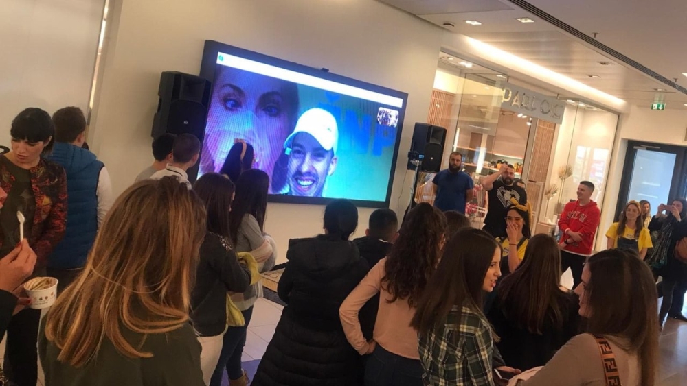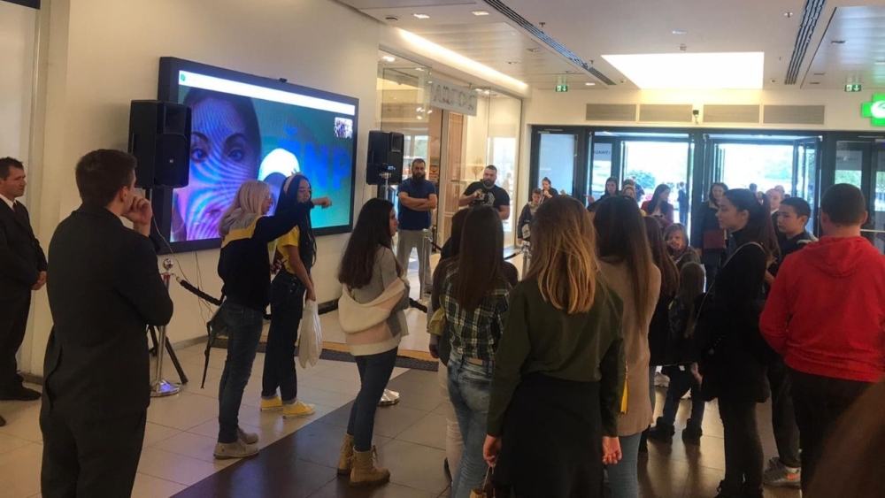 Popularni jutjuber Bogdan Ilić, poznatiji kao Baka Prase, oduševio je svoje fanove kada se pojavio u Tržnom centru Ušće na video-bimu preko kog im se obratio i razgovarao sa njima.