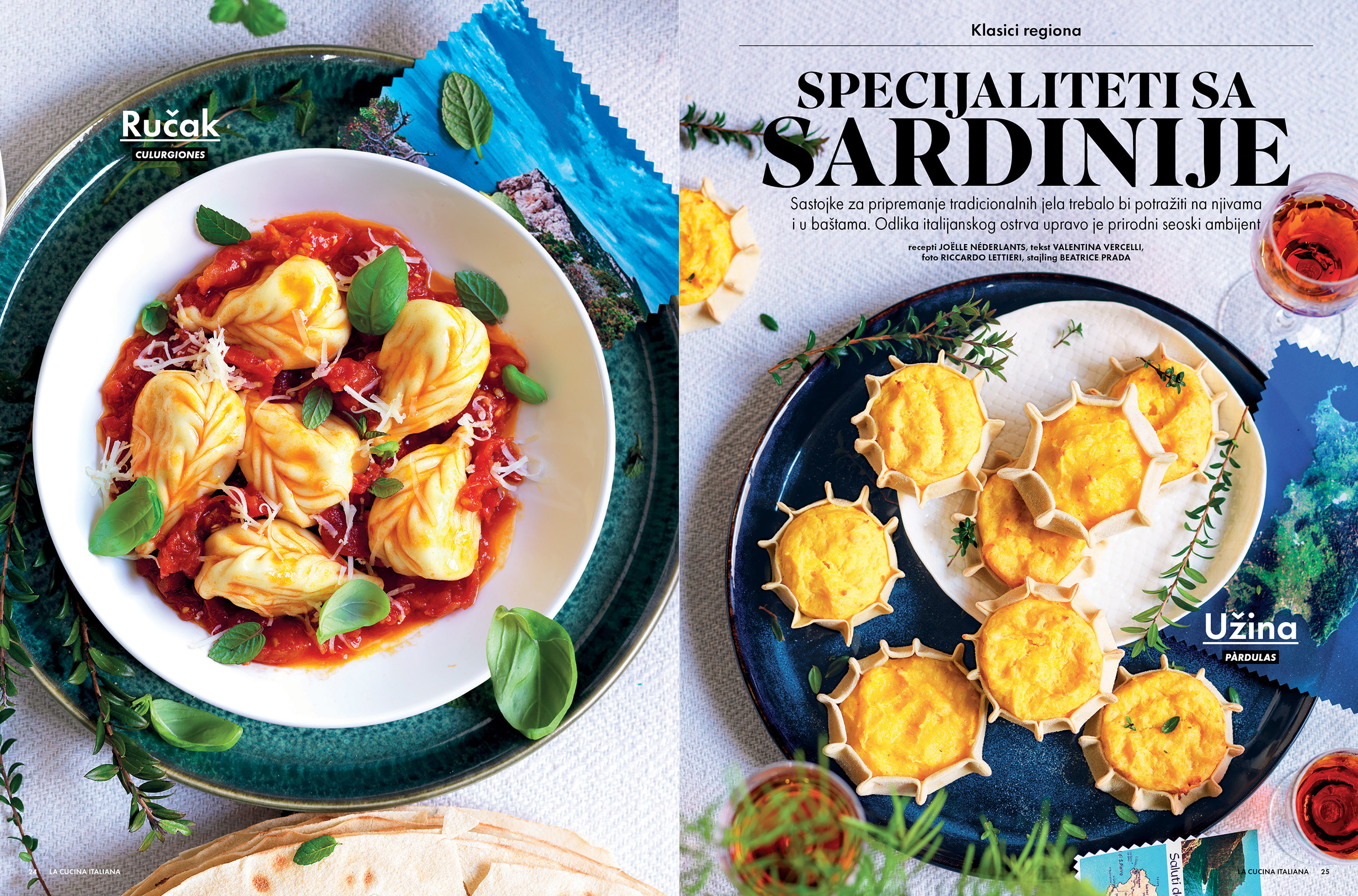 Potom se spuštamo do Sardinije, do živopisnih primorskih sela iz kojih se šire mirisi lokalnih specijaliteta. Hrana, piće, svakodnevica - sve je dozirano, decentno i smireno. Probajte naš culurgiones, pastu punjenu krompirom, pekorino sirom, belim lukom i nanom, ili pàrdulas, tradicionalne tortice od rikote. Ako vas put ovog leta odvede do tog ostrva, ponašajte se kao pravi Sardinjanin - uz ručak se pije crveno vino, ali ne više od decilitra.
