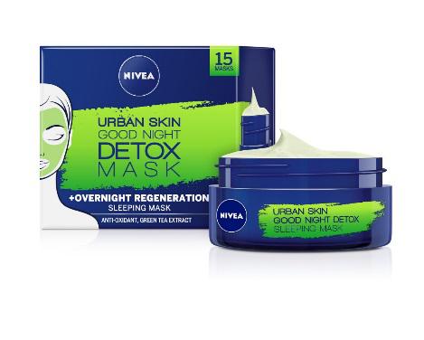 Koža je svakodnevno izložena dejstvu nevidljivih zagađujućih materija i stresnih faktora. NIVEA Urban Skin Good Night Detox noćna maska deluje protiv ovih negativnih uticaja tako što neguje i obnavlja kožu tokom noći. Ova maska je obogaćena dragocenim ekstraktom zelenog čaja, koji je poznat po svojim antioksidativnim svojstvima i brojnim koristima za zdravlje tela i kože. NIVEA Urban Skin Good Night Detox noćna maska može da umanji uticaj zagađenja koji negativno deluje na zdravu kožu. NIVEA Urban Skin Good Night Detox maska tokom noći intenzivno hidrira kožu, što je veoma važno za njen zdrav i lep izgled. Površina suve kože je veoma osetljiva i njenu ravnotežu je lako narušiti. Ova maska je veoma efikasna tokom noći: obogaćena hijaluronskom kiselinom, ona pruža koži dodatnu hidrataciju i jača njenu zaštitnu barijeru. Koža na taj način ima dovoljno vremena za obnavljanje i hidrataciju. Provitamin B5, koji je poznat i kao pantenol, važan je član moćne porodice vitamina B kompleksa i drugi sastojak maske NIVEA Urban Skin Good Night Detox noćne maske. Ova maska hidrira kožu i pospešuje njenu regeneraciju kako bi bila meka i zdrava. Zahvaljujući detoksikaciji i regeneraciji, koža je spremna za sve avanture koje donosi novi dan.