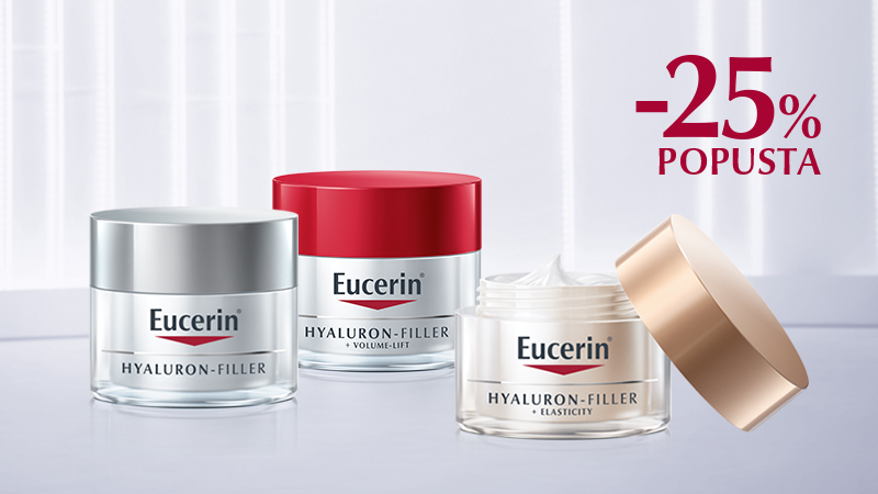 Kreme iz Eucerin®Hyaluron-Filler linije optimalno hidriraju kožu, deluju na prve znakove starenja, popunjavaju fine linije i duboke bore. Dodatno sadrže bioaktivni saponin koji stimuliše stvaranje hijaluronske kiseline u koži. Noćna krema iz ove linije obogaćena je dekspantenolom, koji podržava proces regeneracije kože tokom noći. Novitet u ovoj liniji je Eucerin® Hyaluron-Filler Dnevna krema SPF 30, pogodna za sve tipove kože, koja koži pruža visoku zaštitu od neželjenih efekata sunca i prevremenog starenja izazvanog sunčevim zračenjem. Redovnom upotrebom krema iz Eucerin®Hyaluron-Filler linije koža je podmlađena, optimalno hidrirana, sveža i blistava!
