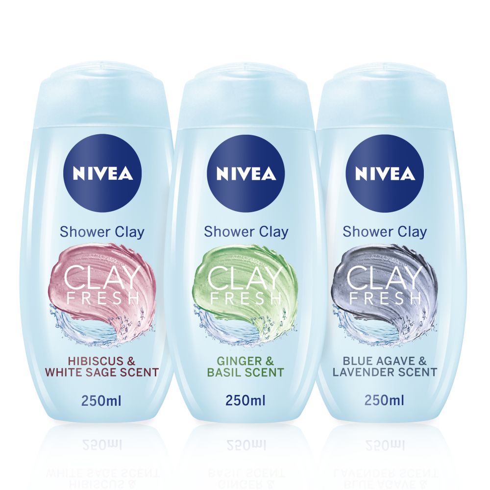 NIVEA predstavlja inovaciju u nezi kože pod tušem. Prirodna glina je glavni sastojak nove formulacije koju je NIVEA laboratorija razvila za istraživanje kako bi koži pružila čišćenje, svežinu i negu tokom tuširanja. NIVEA Clay Fresh gelovi za tuširanje namenjeni su za dubinsko čišćenje celog tela – nove tri varijante efikasno čiste kožu i ne isušuju je dodatno. Uživaćete u osećaju baršunasto meke i nežne kože.