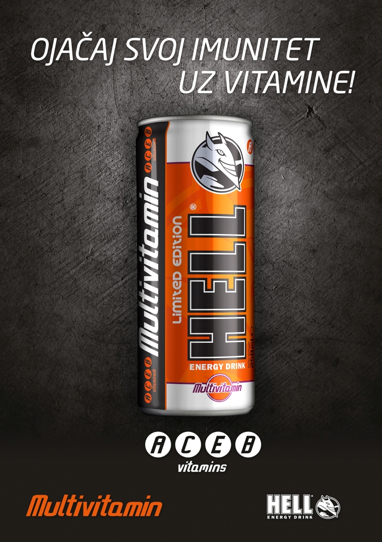 Jedinstven proizvod na tržištu energetskih pića je HELL ENERGY MULTIVITAMIN. Ovo energetsko piće osim vitamina B, sadrži dodatne A, C i E vitamine, koji tokom zimske sezone omogućavaju nadoknadu vitamina usled nedostatka svežeg voća i povrća. Vitamin C jedan je od najjačih antioksidanata i najbolji saveznik u borbi protiv infekcija, virusa, umora, ali on takođe olakšava apsorpciju gvožđa. Vitamin E obezbeđuje zaštitu ćelija jer poboljšava iskorišćenost kiseonika u organizmu i štiti krvne sudove i kožu od slobodnih radikala. Vitamin A takođe je nezaobilazan za dobro funkcionisanje imunog sistema.